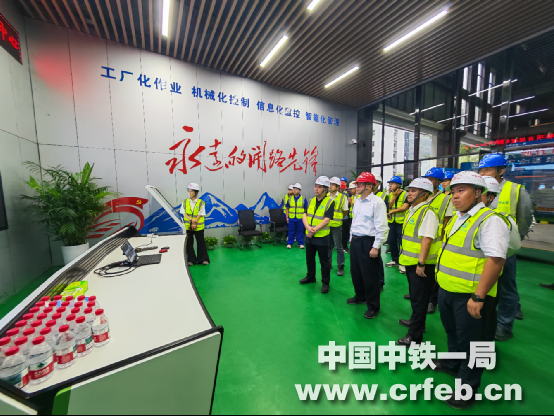 馬春山現場了解了管段內隧道大機配套設施進場、大機維修中心建設情況以及I型機械化配套工藝應用情況,并到管段內鋼結構加工中心詳細檢查中心智能化、智慧化生產情況,重點查看了“八系統兩工位一平臺”全自動型鋼生產線,與郗宜君就原材管控、成品保護以及品質提升等進行了交流溝通。