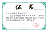 鄭州市軌道交通1號線一期工程土建工程02合同段2013年AAA級安全文... -