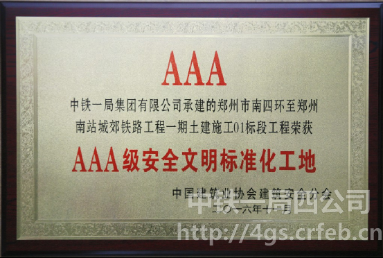 四公司五年來獲得4項全國建筑施工領域安全生產最高獎“全國建設工程安全生產標準化工地暨AAA安全文明工地”的河南省外企業。