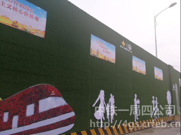 在繁華熱鬧的鄭州市火車站西廣場北邊,緊鄰站北街北側,被工地大門一分為二的高5.5米圍擋(草綠色文化墻)很是搶眼,文化墻上除了企業(yè)標識之外,還繪制了大量富有河南地方文化特色的名勝古跡、工人勞動場面以及“綠水青山就是金山銀山”等環(huán)保標語,這大門兩側各長約150米的文化墻從色彩和內容上看起來讓人賞心悅目,給人來人往的火車站廣場,增添了都市一道靚麗的風景線。這就是中鐵一局四公司鄭州市政控制節(jié)點工程施工現(xiàn)場,該項目自2017年7月10日開工以來,項目部以企業(yè)核心價值觀為統(tǒng)領,將項目文化融入項目管理的全過程,呈現(xiàn)出創(chuàng)新共享、合作共贏的項目文化新特色,項目部在項目管理、安全質量、成本管控、團隊建設等方面齊頭并進全面發(fā)展,同時也多次受到建設方好評,項目負責人陳宏俊榮獲集團公司黨委優(yōu)秀共產黨員榮譽稱號,項目部黨支部被四公司黨委表彰為先進黨支部,支部書記樊榮被四公司黨委表彰為優(yōu)秀黨務工作者。