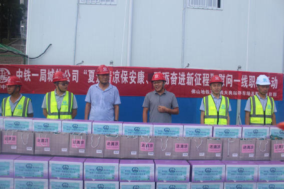 情系員工 夏送清涼。7月20日上午,城軌公司副總經理何學科到佛山地鐵三號線大良站停車場及配套項目部開展了送清涼慰問活動。項目管理人員及一線作業人員60余人參加了慰問活動。