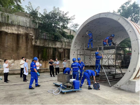 競賽當天,各參賽隊伍早早抵達現(xiàn)場,隊員們精神抖擻,摩拳擦掌,嚴陣以待。競賽設置了多個貼近實際運營的應急場景科目,包括地鐵站防汛應急處置、區(qū)間隧道滲漏應急處置等。身著藍色工服的中鐵一局武漢維保項目隊員在競賽中緊密協(xié)作、嫻熟有序,以規(guī)范的動作和默契的配合,充分展現(xiàn)了“專業(yè)、專注、專心”的應急處置基本功。