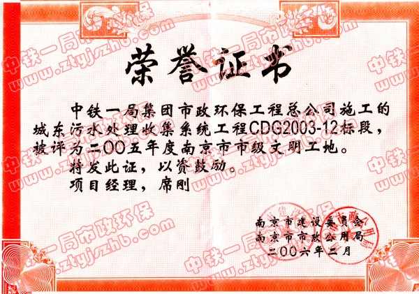 版權所有:中國中鐵一局集團市政環保工程有限公司 Copyright @2005 All rights reserved