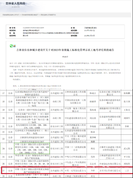 榮獲吉林省“省級(jí)施工標(biāo)準(zhǔn)化管理示范工地”榮譽(yù)稱號(hào)