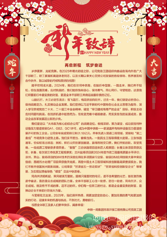 時間:2024年12月31日    作者:黨群綜合部    來源:中鐵一局集團市政環保工程有限公司黨政工團
