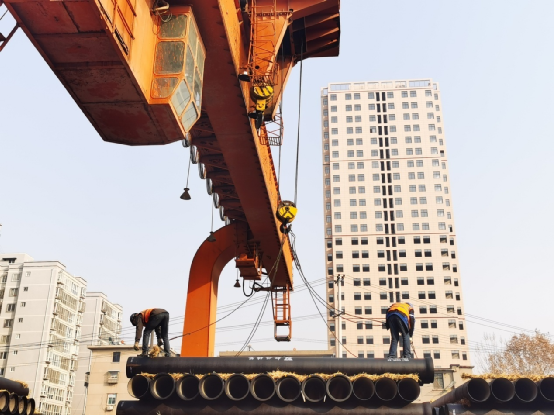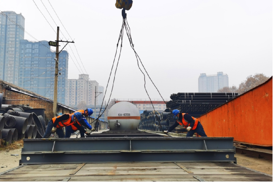 工人在搬運(yùn)鋼軌